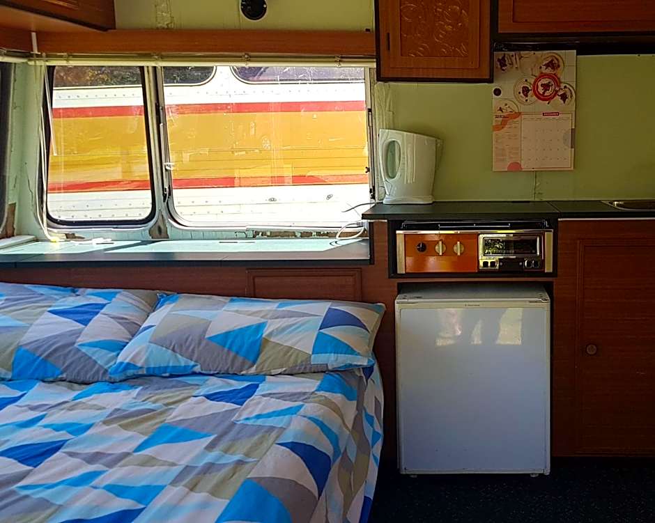 All beds come with pillows. Towels and bedding supplied. The lounge also opens out on to a large grassed area. Guests have access to the nearby communal facilities for toilets, showers, and hand basins.